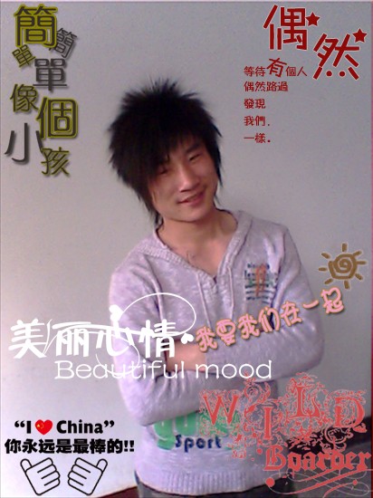 我呢?是個開朗的男孩,愛交朋友,有時不怎么愛說話。工作還不是我理想的,我會用我的努力好好工作 達到我理想。 我的另一半就是你了 我們牽著手一起走下去 。。。。